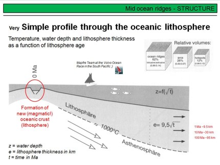 This overhead provides the lead isotope composition of mid-ocean ridge basalts, and the underlying decay schemes. The non-radiogenic reference isotope in the case of lead isotope compositions is 204Pb, the radiogenic isotopes are 206Pb from 238U, 207Pb from 235U and 208Pb from 232Th. So, the Pb-isotope space combines two parent isotopes from one element (U) with another element (Th) with different geochemical behaviour. It therefore provides a very powerfull tool in deciphering geochemical processes over geological time.