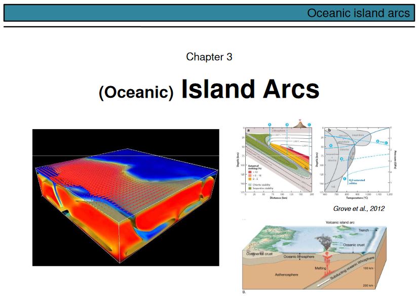 With these overheads we start a new chapter, namely we will talk about island arc settings and their magmatic products in the following. Note that this chapter in part mixes up intra-oceanic and continental arcs, as primary magmas are often the same or at least very similar, but because of the differing lithosphere thicknesses in both settings the final magmatic products will be rather different.